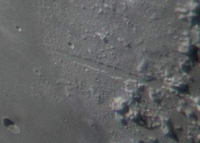 Alpental ca. 1000-fach am 20.5.2002, Mondalter 8 Tage (1 Tag nach zunehmendem Halbmond) ( Dieses Bild ist um 180° gedreht in "Sterne und Weltraum 2/2003" auf Seite 44 veröffentlicht!)