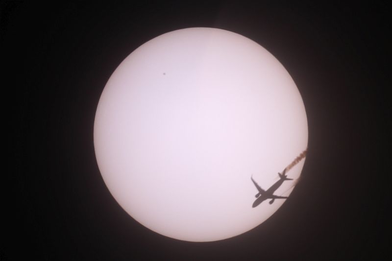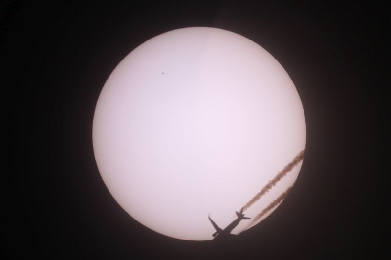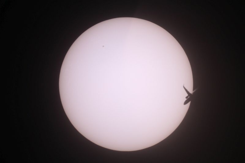 Flugzeug vor der Sonne kurz nach der Finsternis