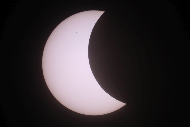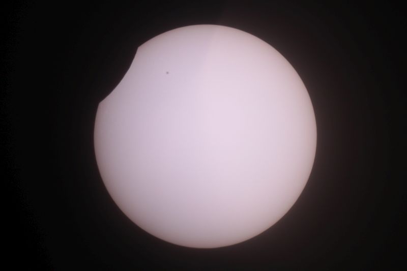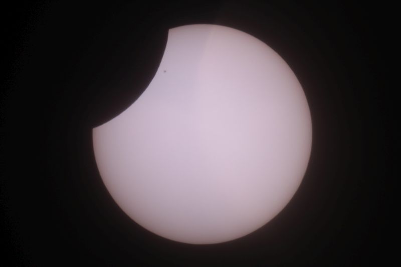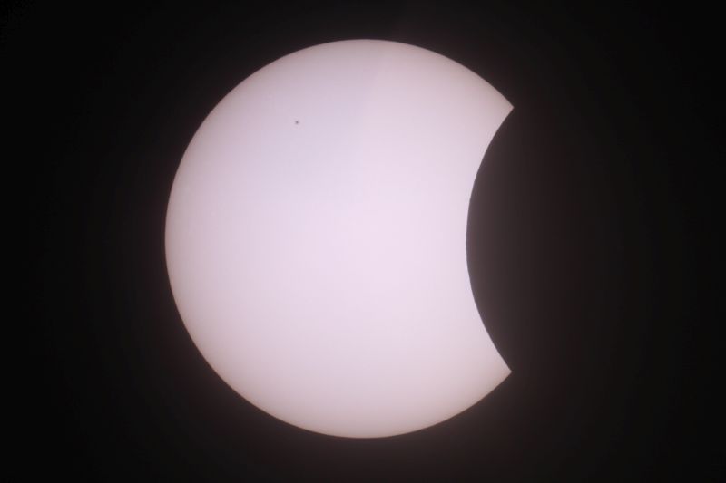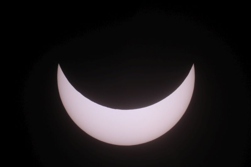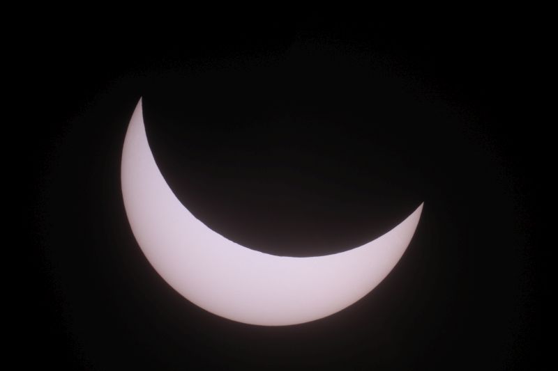 Beobachtungs- und Warnhinweise: Achtung: Nicht direkt mit bloßem Auge in die Sonne schauen, auch nicht in eine schmale Sonnensichel! Es besteht die Gefahr bleibender Augenschäden bis zur Erblindung. Der Blick durch ein Fernglas oder gar Teleskop ohne zugelassenen Sonnenfilter hat schwere Augenschäden oder sofortige Erblindung zur Folge! Ich habe mal durch ein Fernglas mit einer Filterfolie geschaut, die das Sonnenlicht um den Faktor 10.000 statt der erforderlichen 1.000.000 reduzierte. Ich spürte sofort einen Stich im Auge, der erst nach über einem Monat nachließ! Mittlerweile spüre ich nichts mehr und auch der Augenarzt hat vorerst keine bleibenden Schäden festgestellt, aber der Vorfall zeigt eindringlich, daß mit der Sonnenbeobachtung nicht zu spaßen ist! Wer ein billiges Kaufhaus-Teleskop hat besitzt eventuell einen kleinen Okularfilter, der angeblich für die Sonnenbeobachtung zugelassen sein soll. Solche Filter sind sehr gefährlich, da sie das voll konzentrierte Sonnenlicht abbekommen und leicht platzen können. Es gibt Astronomie-Firmen, die Sonnenfilterfolie für Teleskope in der Preisklasse um 30 Euro anbieten. Diese werden vor der Teleskopöffnung befestigt und bekommen kein konzentriertes Sonnenlicht ab. Suchen Sie dazu in Google unter "Sonnenfilterfolie". Entsprechende Folien mit der optischen Dichte 5 (Lichtreduktion um Faktor 100.000) sind auch für das bloße Auge empfehlenswert. Ich möchte eindringlich von Experimenten mit irgendwelchen unbekannten Folien, Filmstreifen usw. abraten. Wer z.B. einen geschwärzten Dia- oder Negativfilm gegen die Sonne hält, könnte meinen, ausreichend geschützt zu sein. Doch eine Aufnahme mit einem Spektrometer zeigt, daß bei bestimmten Wellenlängen im infraroten Licht etwa 80% des Sonnenlichtes durchgelassen werden, was für die Augen sehr gefährlich ist! Sehr problematisch ist auch die Rettungsfolie vom Auto, wenn man eine oder 2 Lagen benutzt. Eine dreilagige Rettungsfolie führt zwar nicht zur Erblindung, kann aber unter Umständen Augenschäden hervorrufen. Bei einigermaßen trübem Himmel kann es sein daß man trotz professioneller Folie nichts mehr sieht. BITTE NICHT OHNE SONNENFINSTERNISBRILLE IN DIE SONNE SEHEN! Viele weitere Fotos von anderen astronomischen Ereignissen gibt es hier zu sehen (Abzüge werden günstig angeboten). Wärmstens empfehlen möchte ich auch meine Foto-CD mit über 1000 Bildern von astronomischen Besonderheiten für 18 Euro inklusive Porto. 5 Euro davon gehen an die Kindernothilfe! Mail: martin-wagner.org@web.de