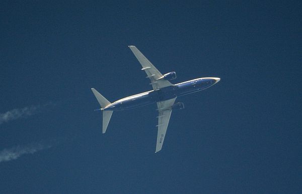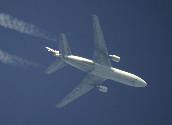 Dreistrahliges Flugzeug in Reiseflughöhe, Ausschnitt