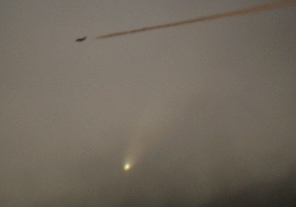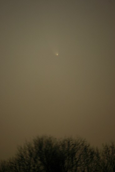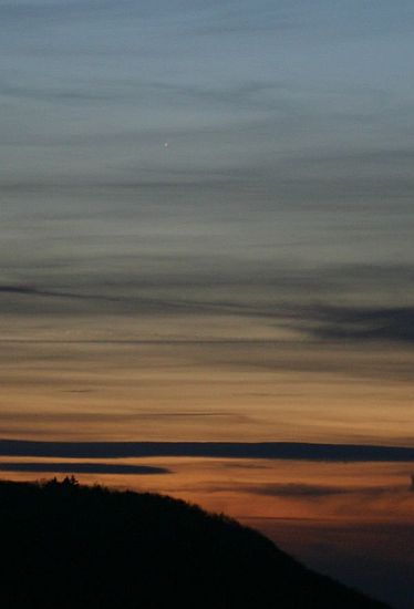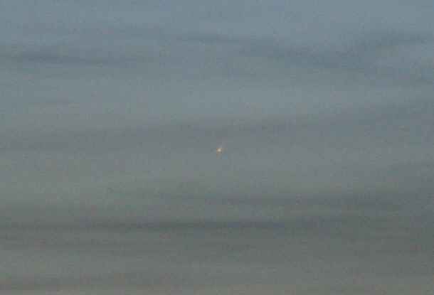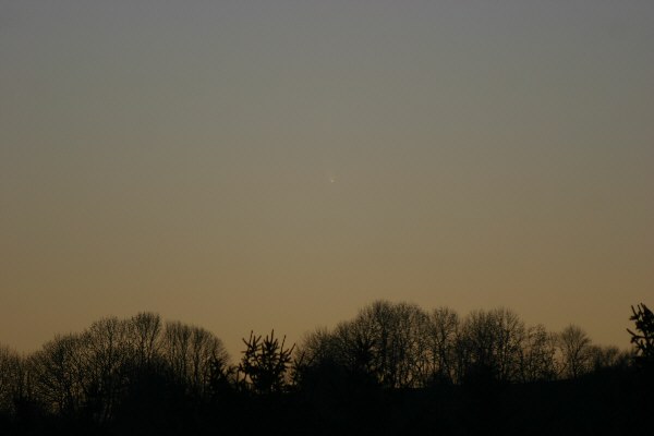 Komet McNaught am 7.1.2007 gegen 17:30 mit 135mm, Blende 2,8, 400ASA, 1/15s. Anblick im Fernglas deutlich schöner!