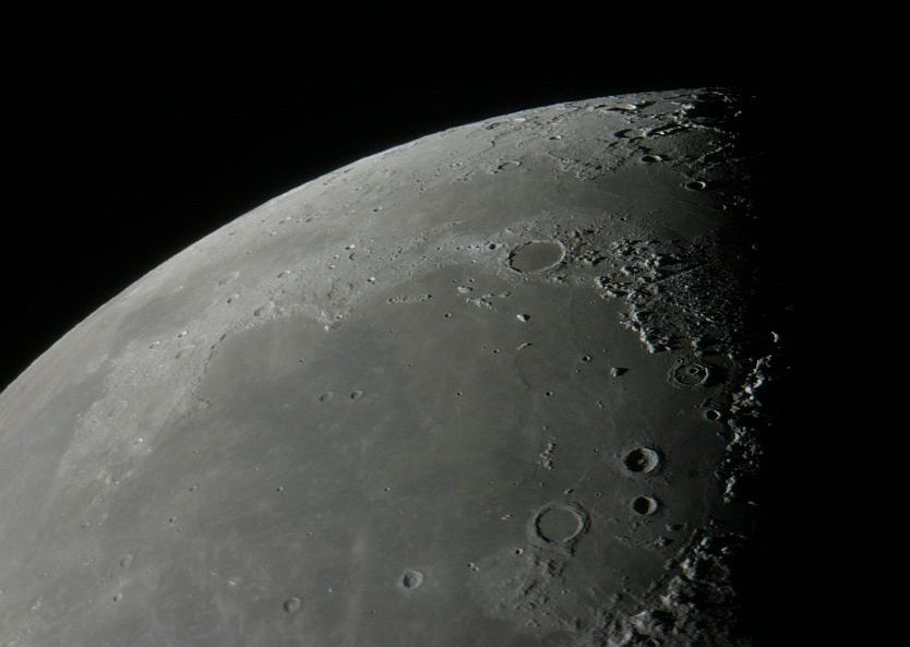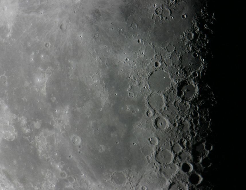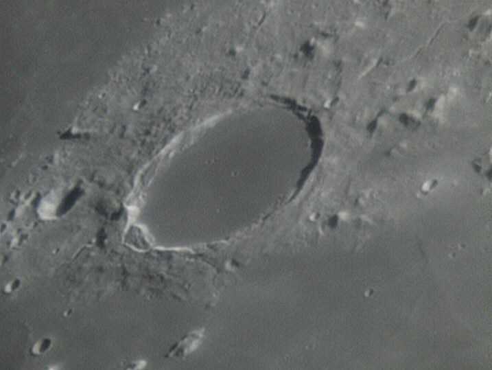 Plato mit 100km Durchmesser - die 4 kleinen Krater in der Mitte haben je rund 2km Durchmesser.