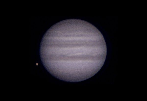Jupiter und Ganymed mit Teleskop und WebCam am 24.1.2004