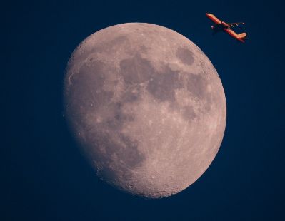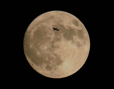 Flugzeug vor dem Vollmond