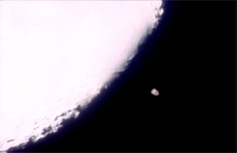 Am Dienstag, dem 22. Mai 2007 konnte man in Mitteleuropa in der Abenddämmerung wieder eine Saturnbedeckung sehen. Gegen 21:20 MESZ wurde der Saturn vom zunehmenden Halbmond an der dunklen Mondseite bedeckt, gegen 22:25 MESZ trat der Saturn an der hellen Mondseite wieder aus. Der Monduntergang war erst gegen 2:00. Somit konnte das Ereignis im Fernglas sehr gut beobachtet und fotografiert werden. Der Saturn braucht ohne Ring normalerweise ca. 40s bis er vollständig bedeckt wird, mit Ring ca. 60s. Beim Eintritt des Saturn hinter den Mond war das Wetter gerade noch gut. Wenige Minuten bedeckten dann Wolken Saturn und Mond gleichzeitig. Bilder dieser und der Saturnbedeckung vom 3.11.2001 und vielen anderen astronomischen Ereignissen können Sie auf meiner Foto-CD bei mir bestellen. Ferner gibt es am Nachmittag des 18. Juni eine im Fernglas erkennbare Venusbedeckung und am Morgen des 24. Dezember eine Marsbedeckung, die in Deutschland zu sehen sind! Martin Wagner, letzte Änderung 22.5.2007