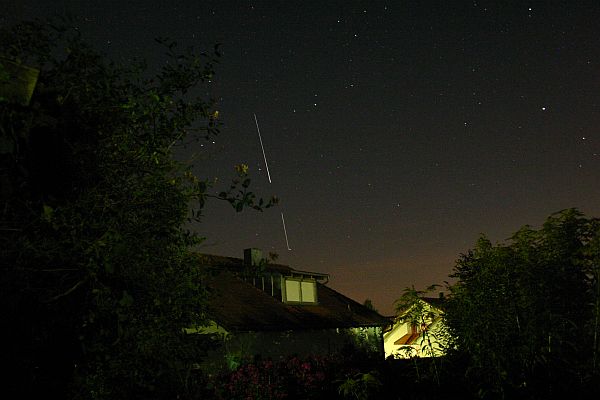 - 21:37 MESZ, fast senkrecht (ca. 70°) am Himmel