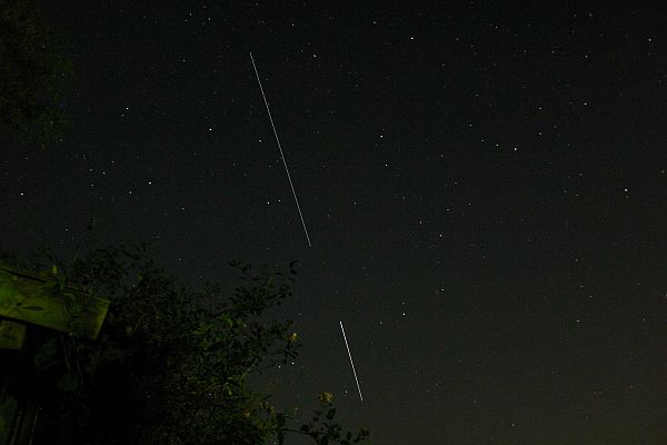 21:37 MESZ) + Raumstation ISS (rechts, 21:38 MESZ) am 9.9.2009,