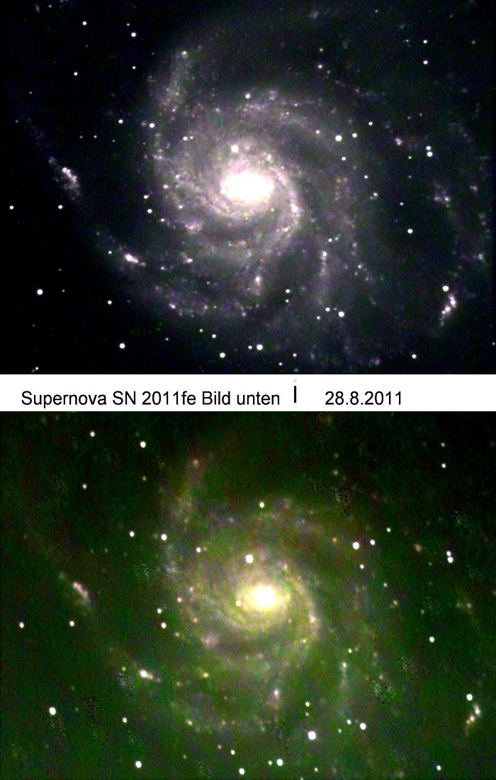 Die Supernova ist der helle Stern ^ 2cm oben! Teleskop jeweils 25cm-Newton f=1300mm